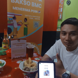 Di Kedai Circles, di mana orang-orang berbaris untuk menukarkan voucher mereka dengan mangkuk bakso (sup bakso) atau kopi yang mengepul, Anda bisa merasakan rasa peduli dan koneksi. Lima puluh voucher tersedia untuk semangkuk besar bakso kenyang seharga 16.000 Rupiah, dan lima puluh lainnya untuk bakso standar dan minuman seharga 12.000 Rupiah. Untuk mendapatkan voucher, pelanggan harus memberikan bukti empat pertukaran Poin Circles, yang sama dengan bukti kontribusi mereka kepada komunitas.